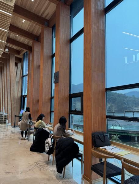 ![]() 전주 덕진공원에 자리한 연화정 도서관은 고풍스런 건축물과 연꽃으로 가득찬 호수를 즐길 수 있는 도심 속 도서관이다. 호수뷰를 감상할 수 있는 창가. |