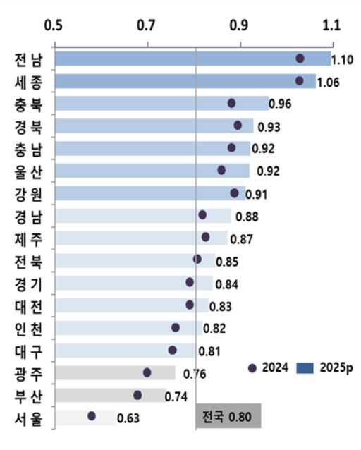 ![]() 지역별 합계출산율 현황<국가데이터처 제공> |