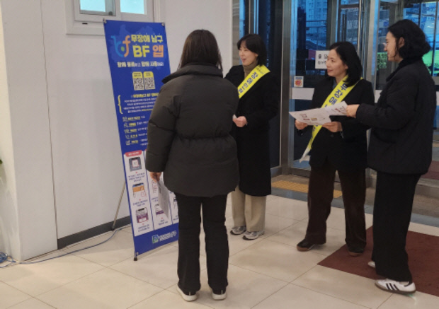 ![]() 광주시 남구 직원들이 최근 청사 내에서 주민들을 대상으로 무장애 남구 BF 앱 홍보를 진행하고 있다. <광주시 남구 제공> |