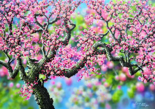 작가는 강렬한 색채와 대담한 구성을 화면에 풀어냈다. 사실적 재현에 머무르지 않고, 배경에 감정의 색을 배치해 ‘내면의 계절’을 구현한 것이다. 혹독한 추위를 견뎌낸 매화는 봄의 생동감을 발할 뿐 아니라 관람객들로 하여금 기억과 감정을 자연스럽게 투영하게 한다.