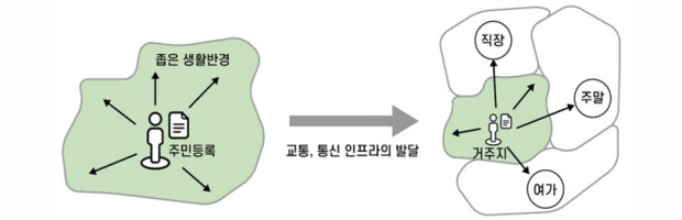 ![]() 교통 및 통신 인프라 발달과 생활반경의 변화. <국토연구원 제공> |
