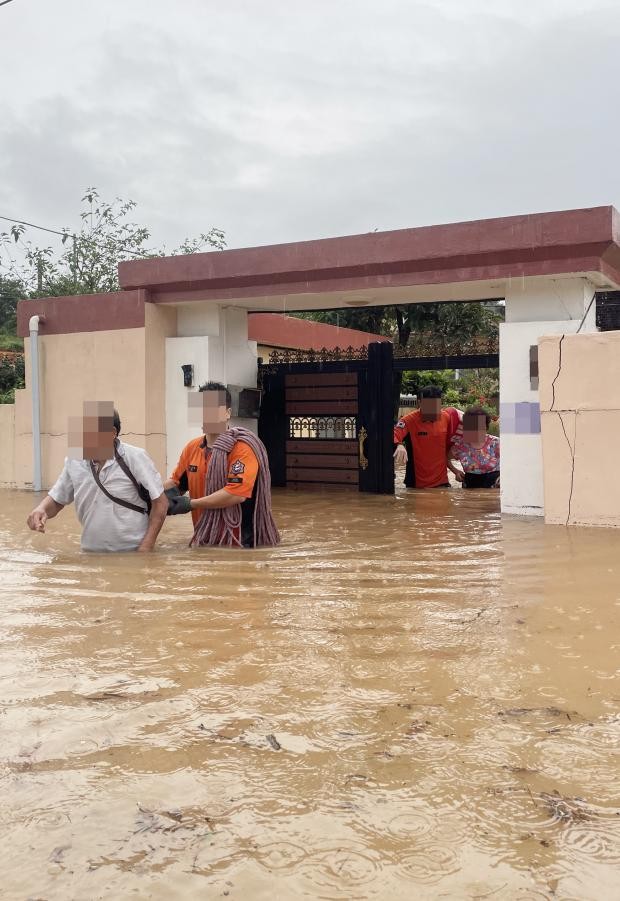 ![]() 해남군 문내면 선두리 일대에 시간당 101㎜의 폭우가 쏟아진 지난 21일 소방대원들이 주택 침수로 고립된 주민을 긴급 구조하고 있다. <전남소방본부 제공> |